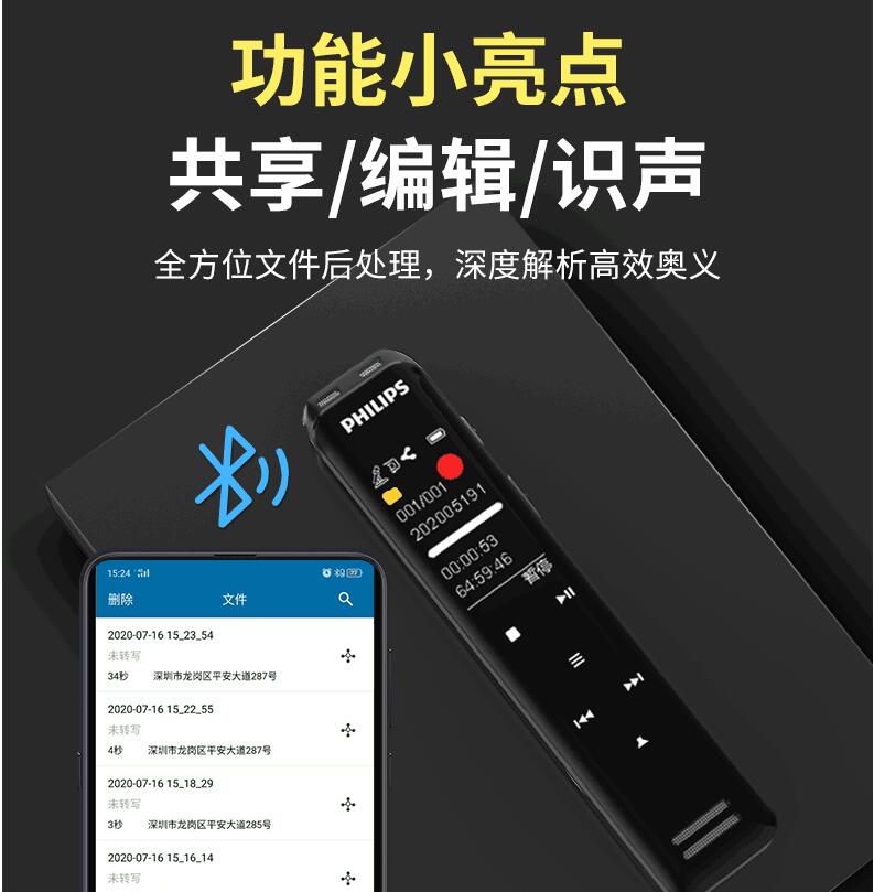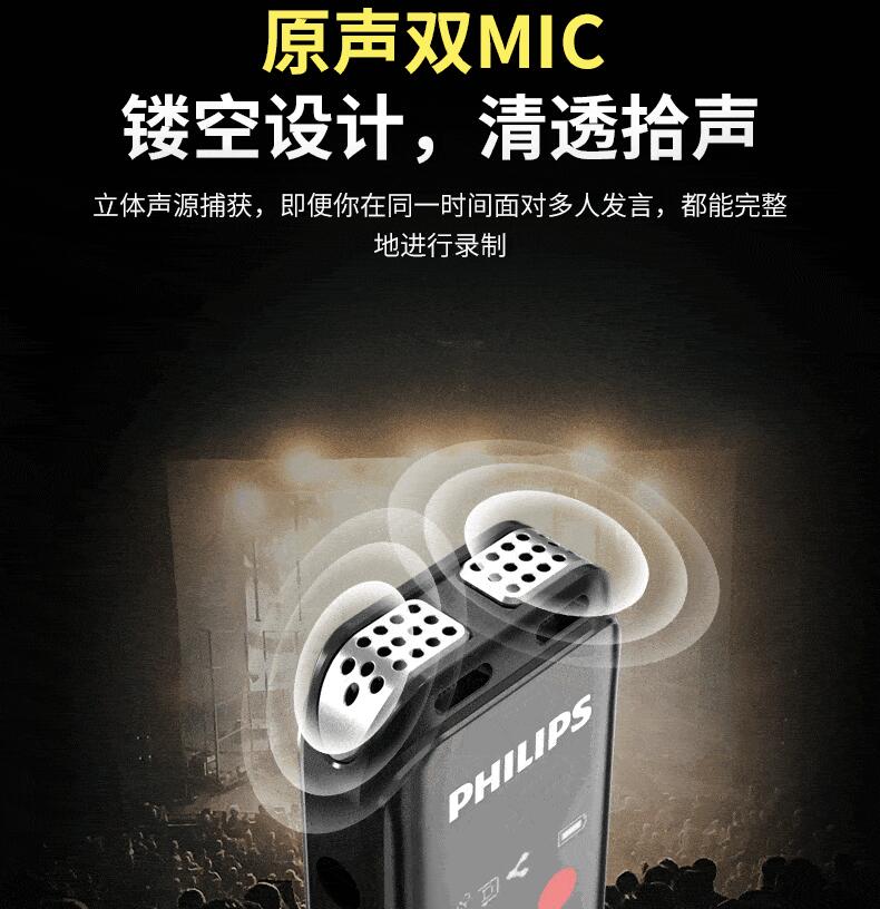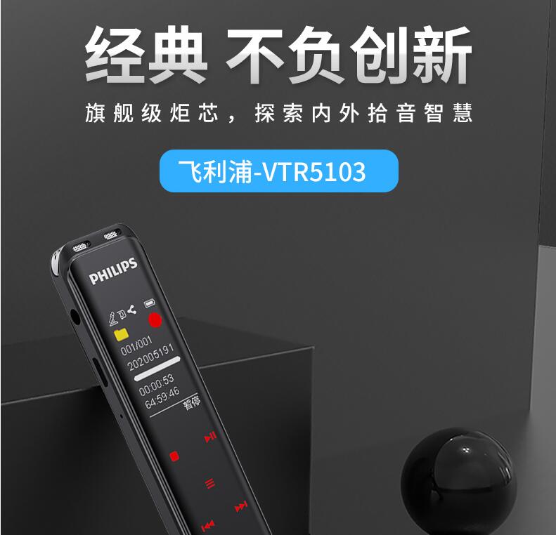 飛利浦VTR5103 Ai智能錄音筆轉(zhuǎn)文字翻譯專業(yè)高清降噪小型超長待機
