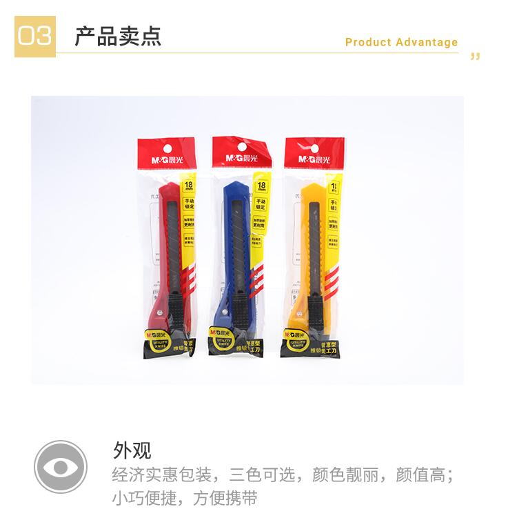 晨光美工刀 美工刀3把 大號(hào)壁紙刀小刀裁紙刀片快遞刀美工刀片工業(yè)用手動(dòng)推鎖美術(shù)刀學(xué)生削筆刀
